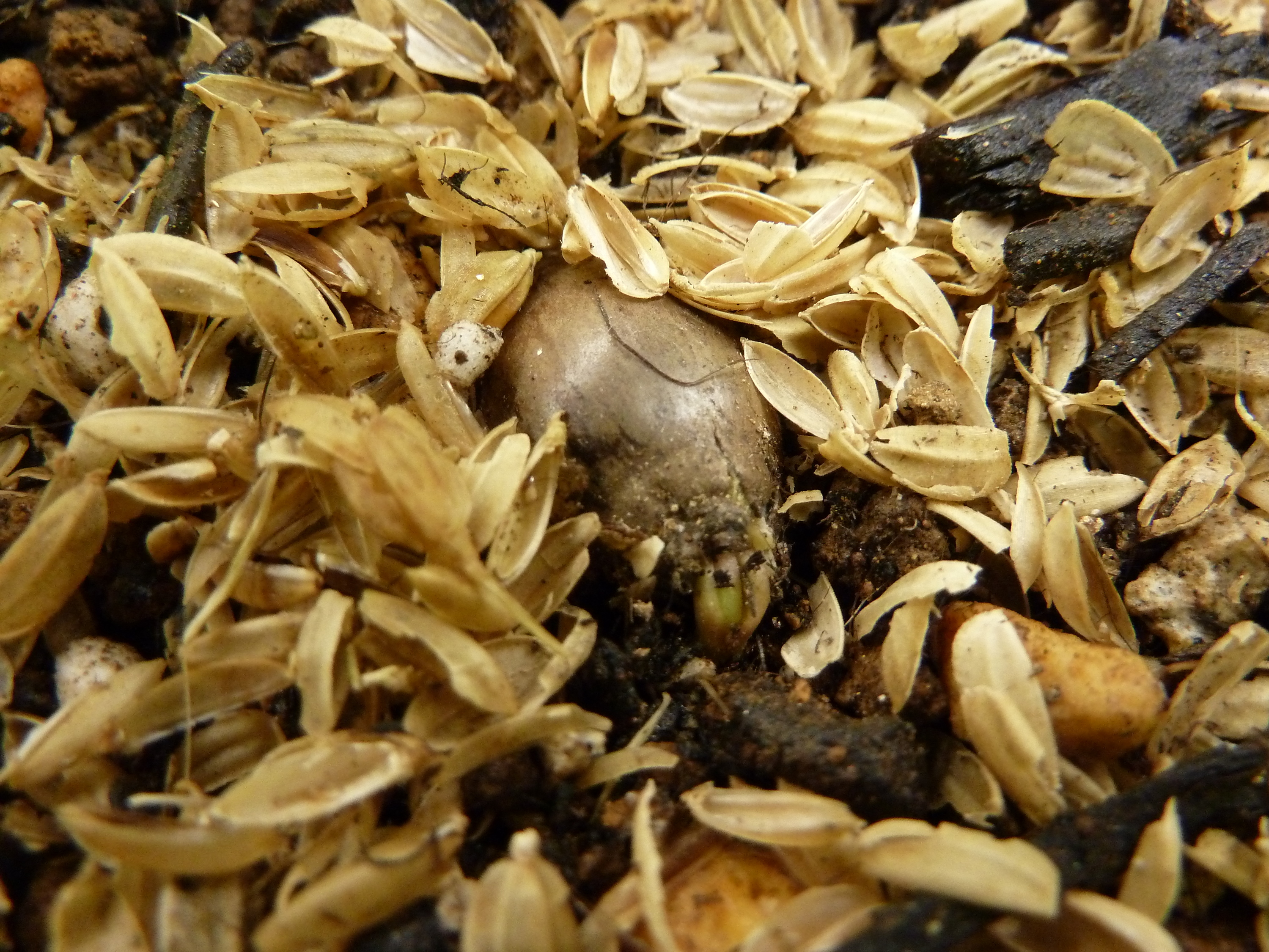 と思ってみても、よく見ると保湿の為の籾殻から出た芽であったり、