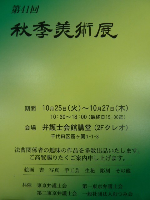 来週、弁護士会館にて毎年恒例の『四会共催秋季美術展』が開催されます。