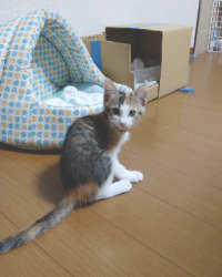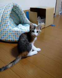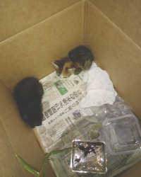 ダンボール箱の中にいる猫をのぞくたびに、つぶらな瞳でみつめられ・・